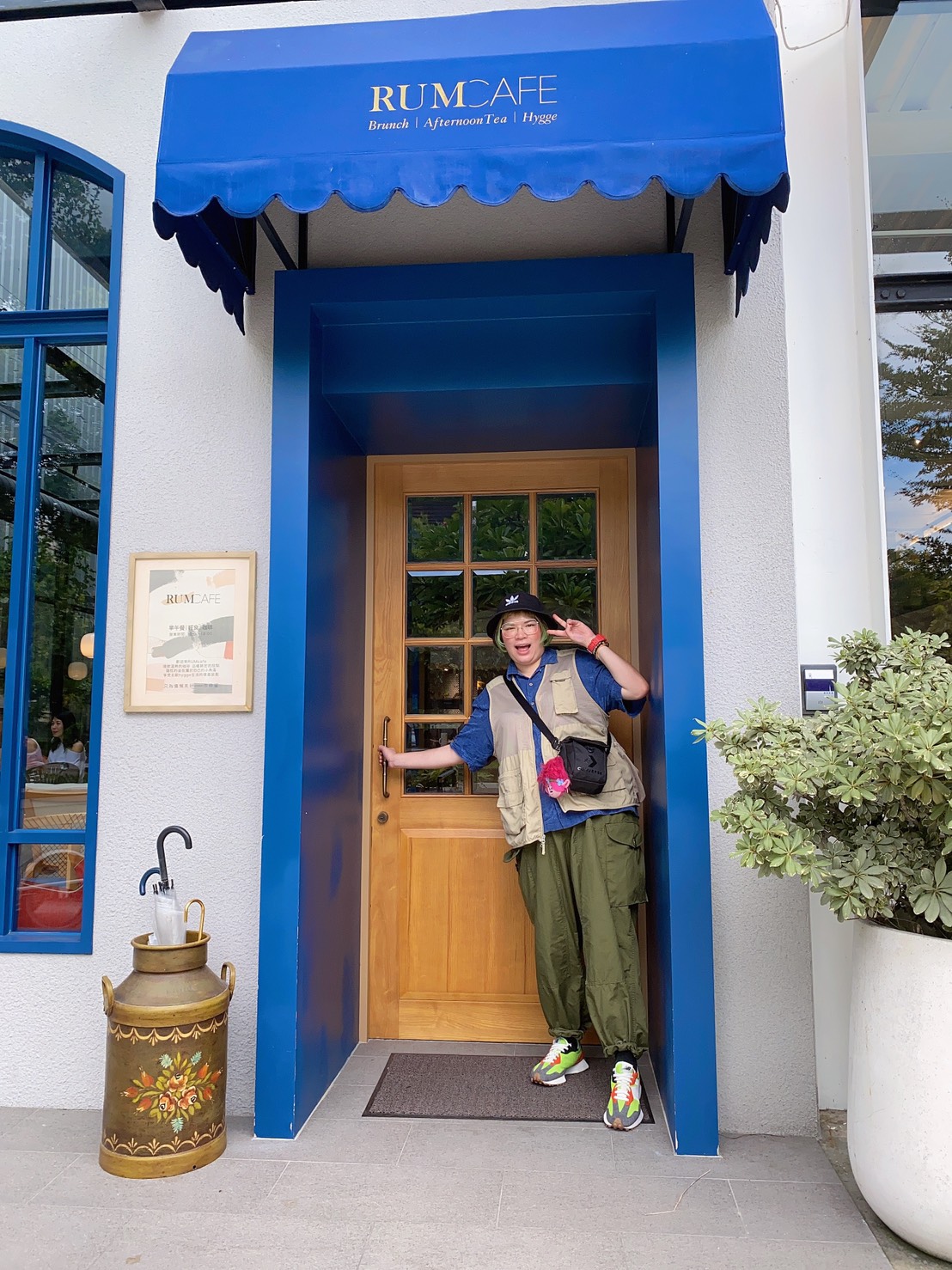 這是咖啡廳的大門口,光是旁邊的傘架都覺得很有質感!