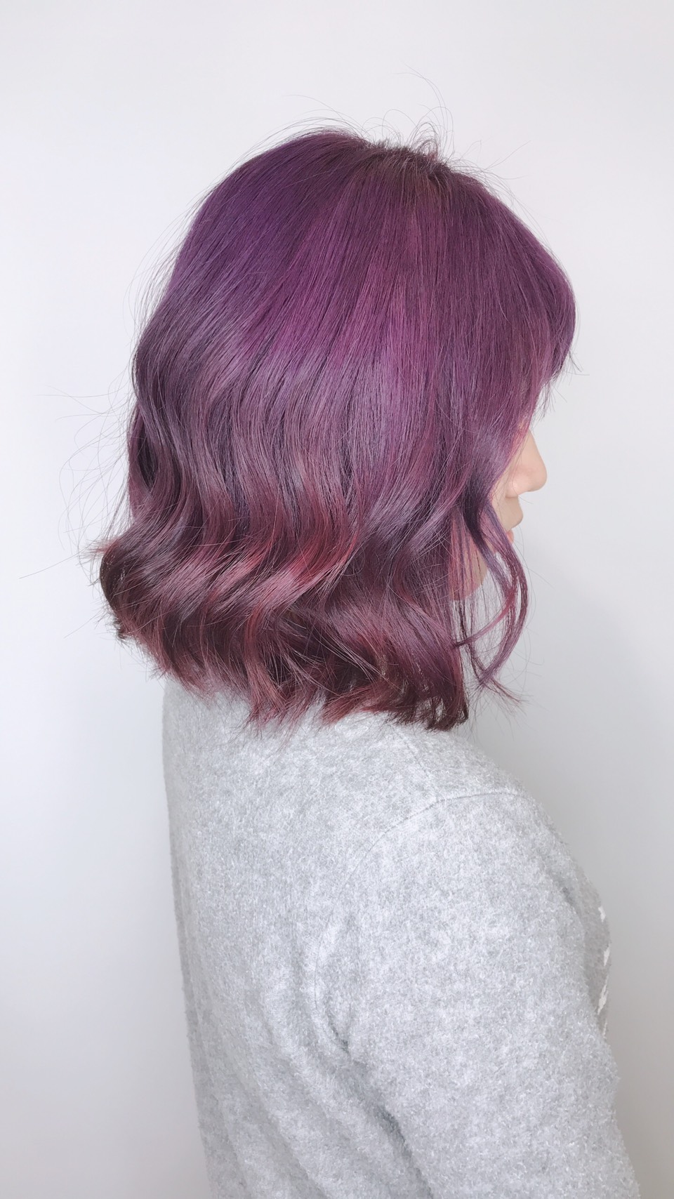 深灰紫,褪色過程慢,相對的整體質感也感覺頭髮比較順!